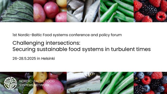 Dealing with such complex problems is a challenge for both research, policy makers, and food system actors. The intertwined challenges cannot be solved by focusing on a single element of the food system, or by a specific sectoral policy or individual scientific discipline. The 1st Nordic-Baltic food systems conference and policy forum invites researchers, policy makers and food system actors to take stock on the challenges related to securing sustainability food systems, share experiences across the Nordic and Baltic countries and look for innovative solutions and future collaborations.